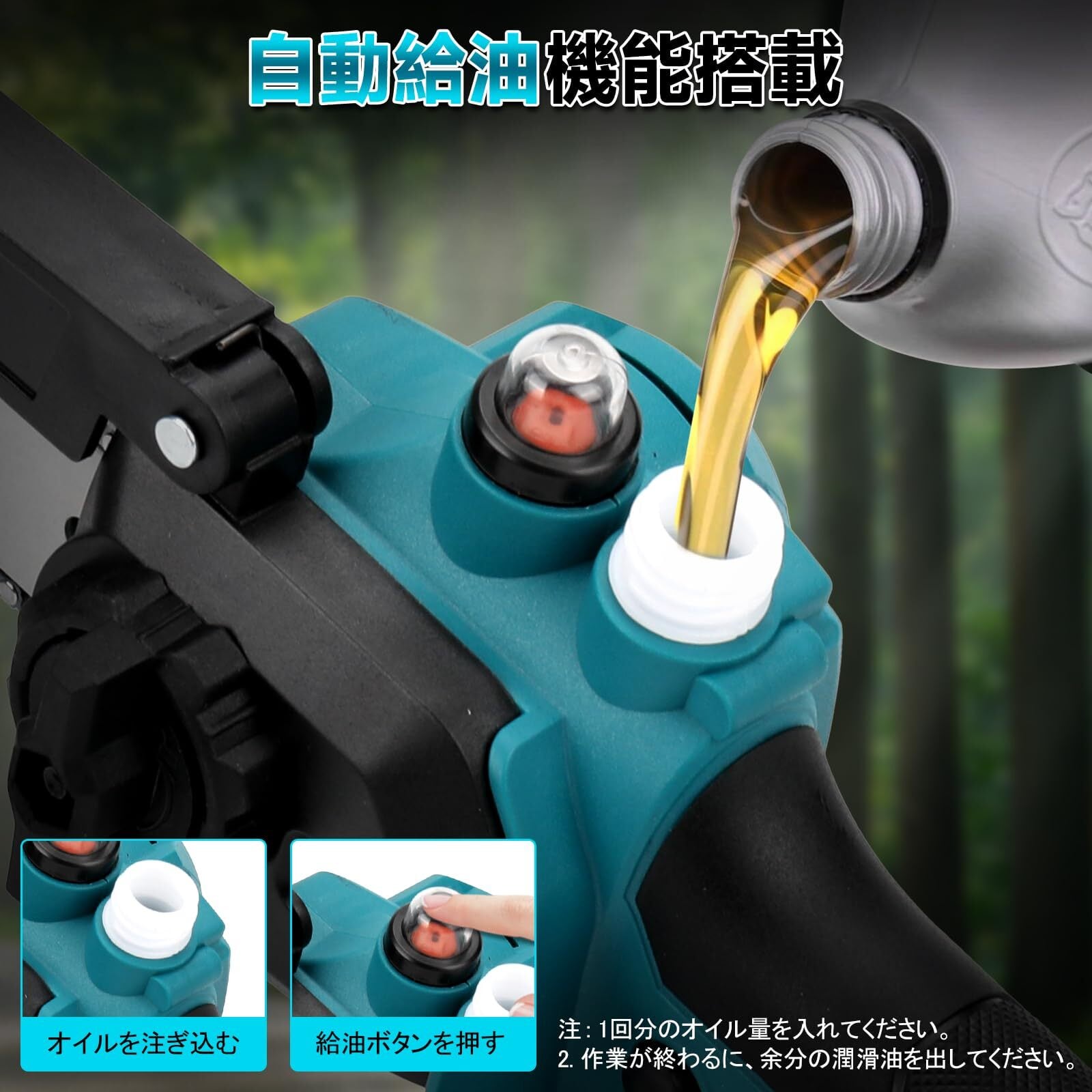 【Makita 電池互換性】 Makita の BL1840、BL1840B、BL1850、BL1850B、BL1860、BL1860B などのリチウムイオン電池を外付け可能で、頻繁な充電の手間を減らしながら、迅速に作業再開できるため、長時間の伐採作業などに最適です(本製品には電池は付属しておらず、別途購入が必要です)。