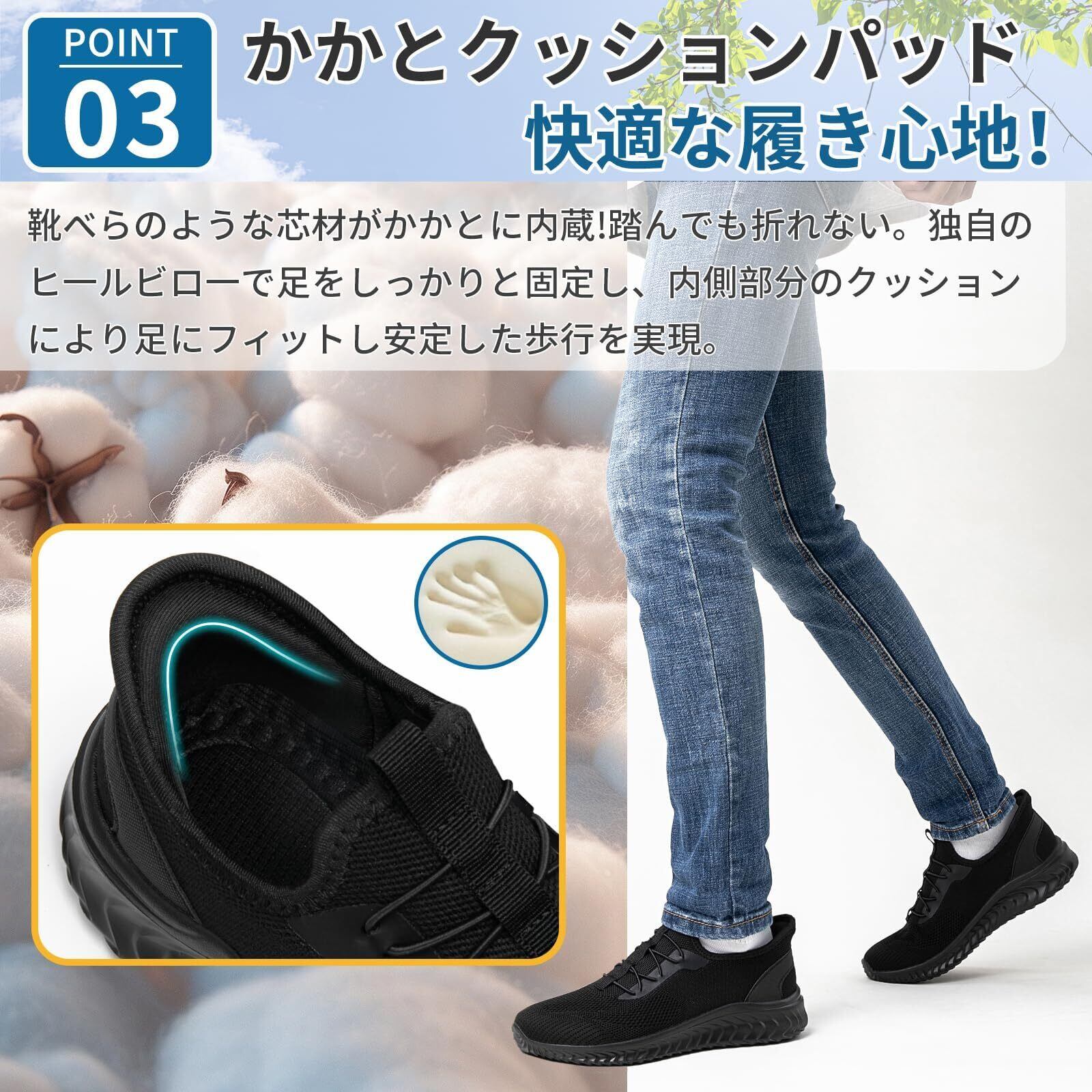 特徴 ユニセックス, スリッポン, 紐なし, 軽量素材, クッション性