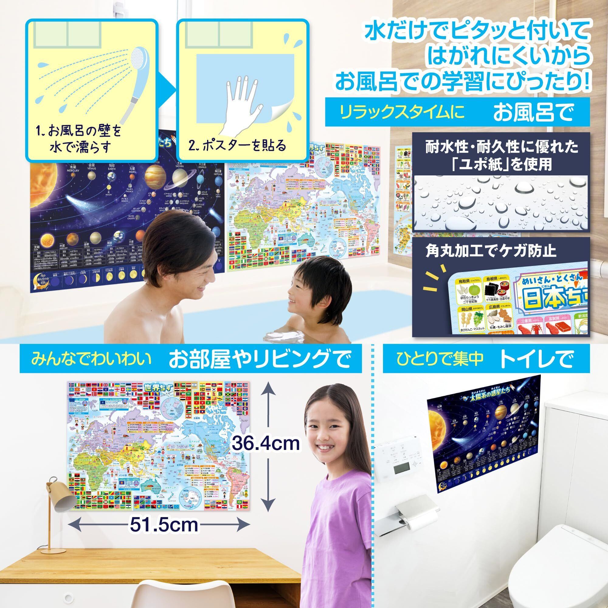 お風呂の学校 日本地図&世界地図&宇宙地図(太陽系)お風呂ポスター 3枚セット 日本製 B3サイズ 地理 社会 知育 学習 防水