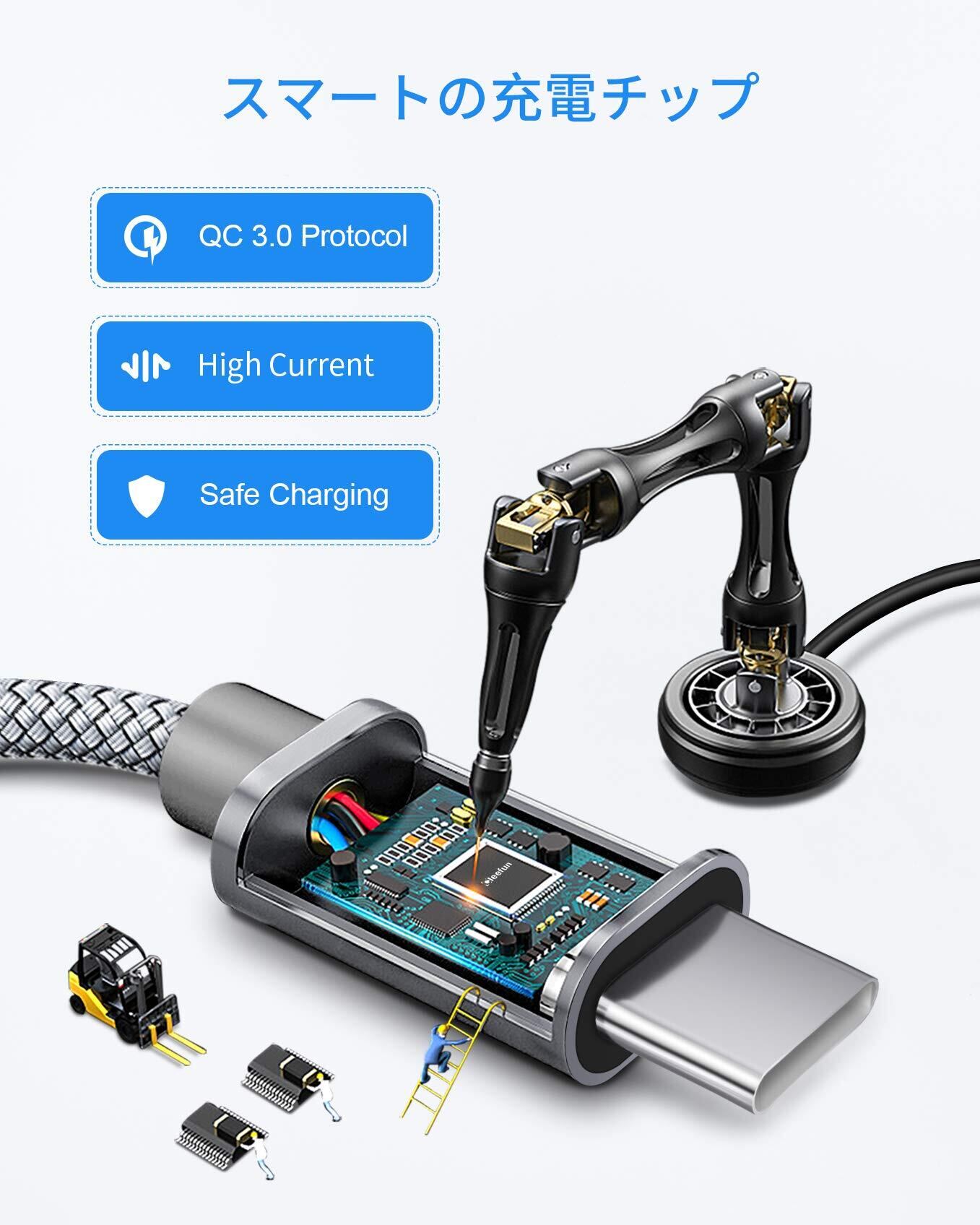 【驚きの高耐久性】このUSB type-cは二重に編み込まれた軍事レベルのナイロンにより、ケーブルの耐久性アップ!また、50Nの引っ張り強度試験、20000回以上の折り曲げ試験に合格し、絡まりにくい、適度な弾力としなやかさがあります。