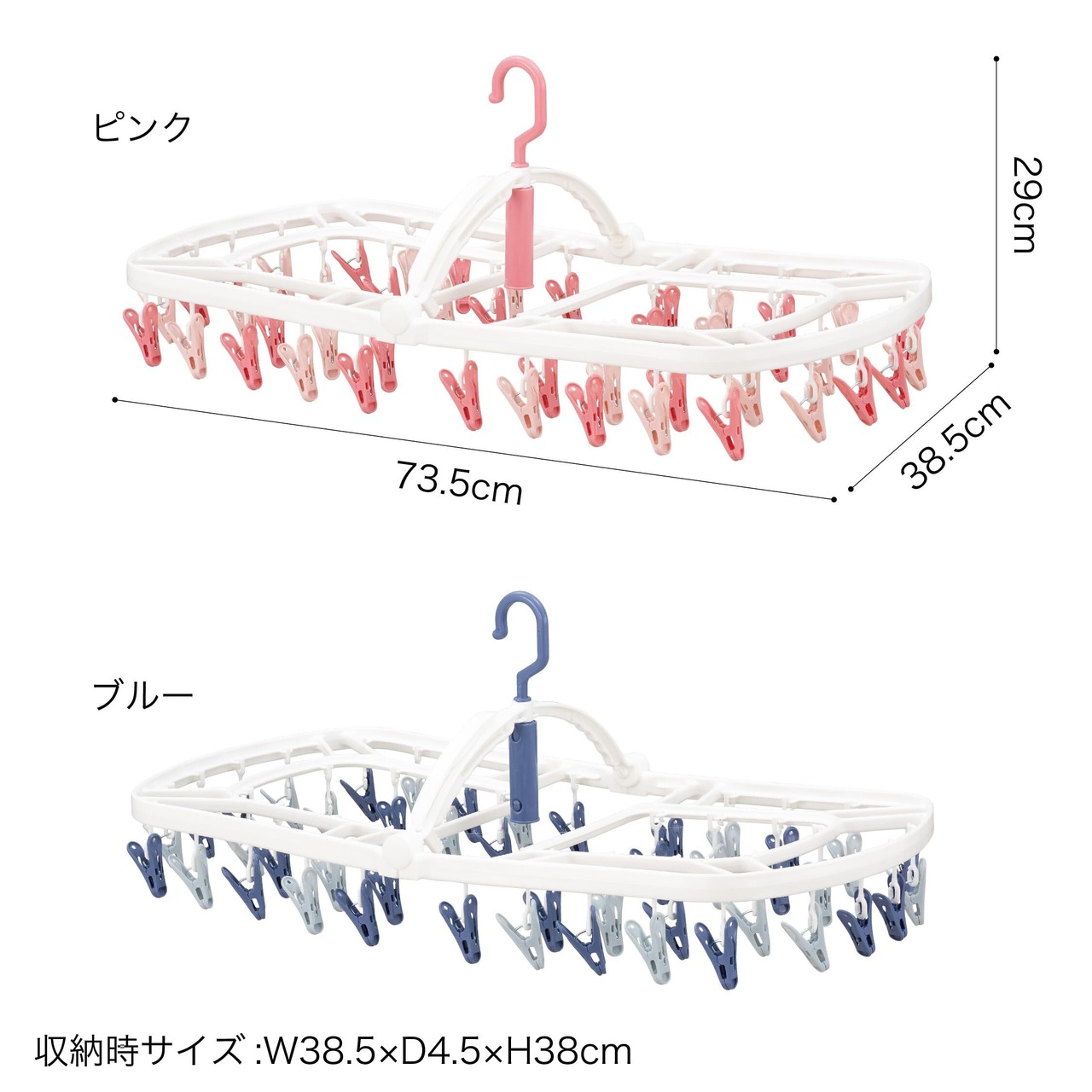 Kogure(コグレ) 洗濯物干し ピンチハンガー 44ピンチ [ブルー] 部屋干しに便利なドア掛けフック 高い所に掛けやすい伸びるグリップ 絡まりにくいピンチ構造 干し分けピンチ 隠し干し2重フレーム ランドリーハンガー44P | allstore1