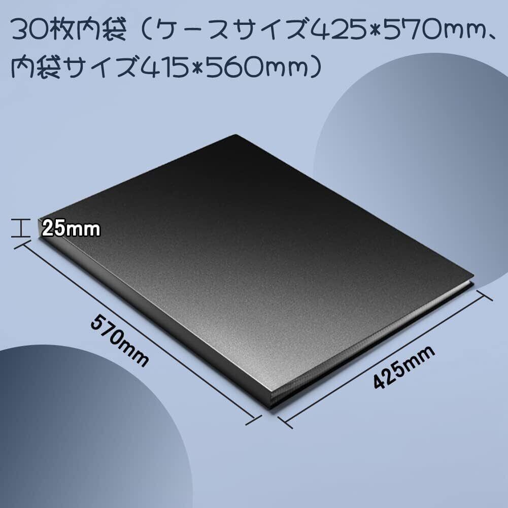 【商品サイズ】表紙サイズ:縦570mm×横425mm×背幅25mm カラー:ブラック 、透明ポケット収納サイズ:縦560mm×横415mm(30枚)