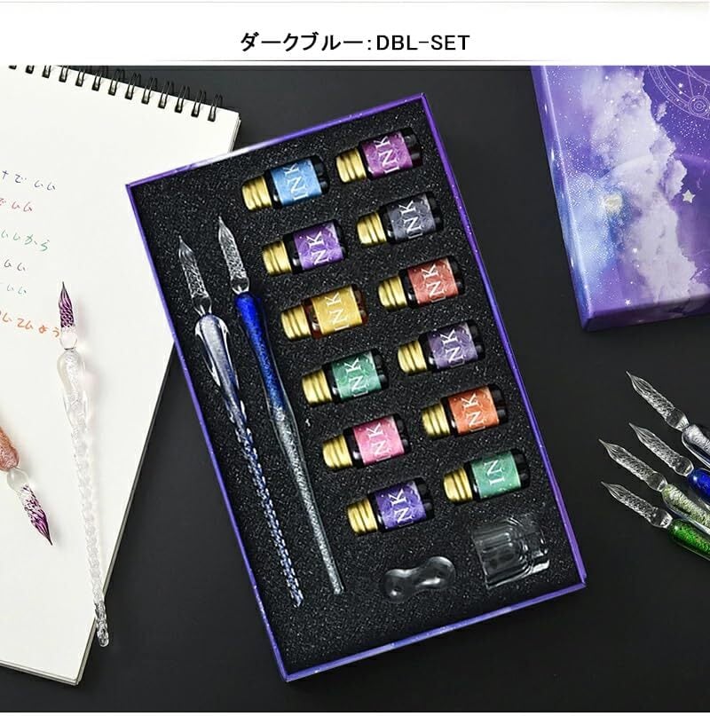 Ducale(ドゥカーレ) ガラスペン セット インク12色 ペン2本 サインペン 万年筆 ボックス付け 星空 レインボーク 署名ペン お絵描き 絵手紙 つけペン グラデーション ダークブルー GRS-DBL-SET | allstore1