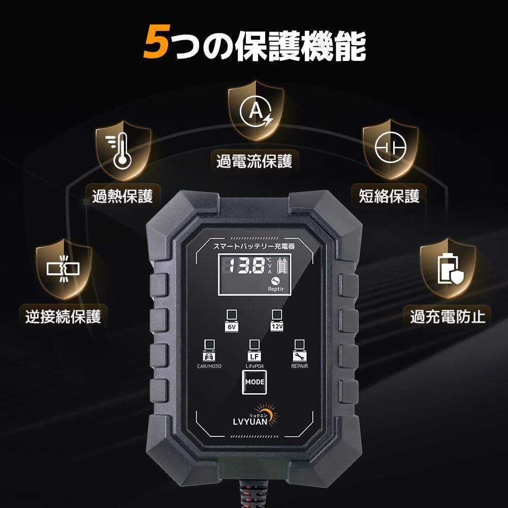 リョクエン(LVYUAN)全自動パルスバッテリー充電器 6V/12V 自動認識 バッテリーチャージャー バイク充電器 定格1.5A【車両ケーブル付属】SAEコネクタ【2025新登場】6V/12V鉛/12VLiFePO4リチウム電池両用 2AH-20AH パルス修復 [ PSE取得済み] スマート充電【サルフェーション 除去機能】 AGM/GEL 車充電可能 バイク・農機・建設機械・小型船舶 | allstore1