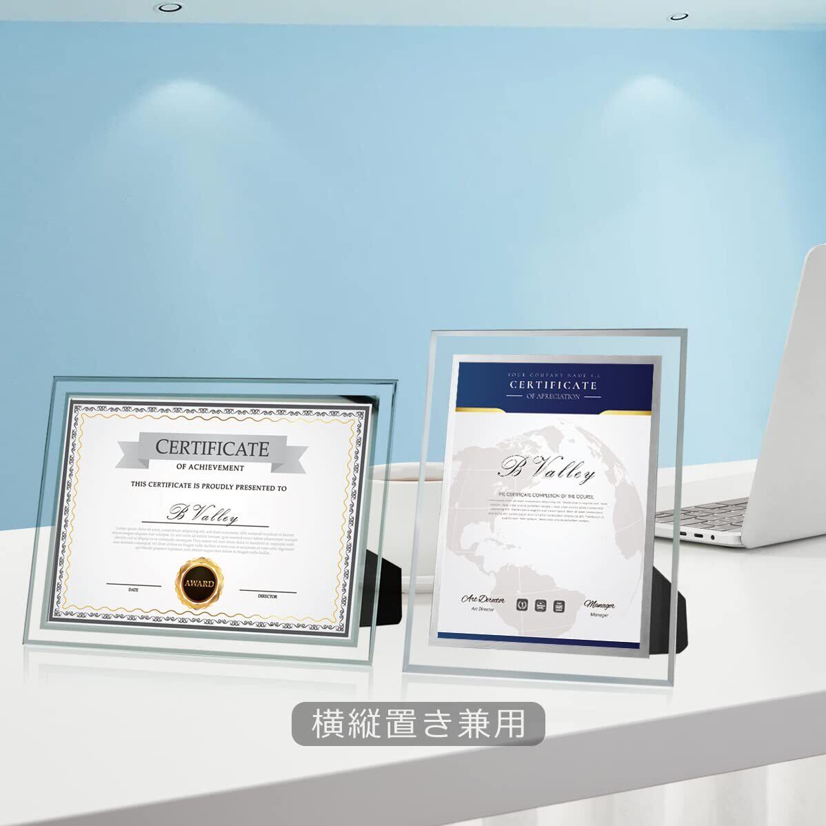 A4 写真立て、賞状額縁、ガラス写真フレーム、 シルバーフォトフレーム、スタンドタイプポスターフレーム ピクチャー、感謝状、表彰状、資格の認定証用 横縦置き おしゃれ 透明 (収納サイズ: 210mmx297mm) | allstore1