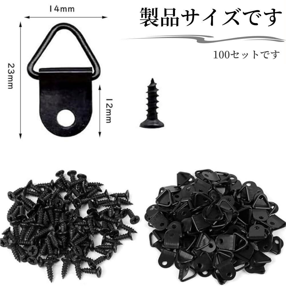 Jindizi 三角吊りカン 壁掛けフック ,100個セット 木ネジ付き 額掛け金具 フック 額吊り金具 額縁工作用金具 三角吊りカン,絵画/工芸品などに展示 (ブラック)