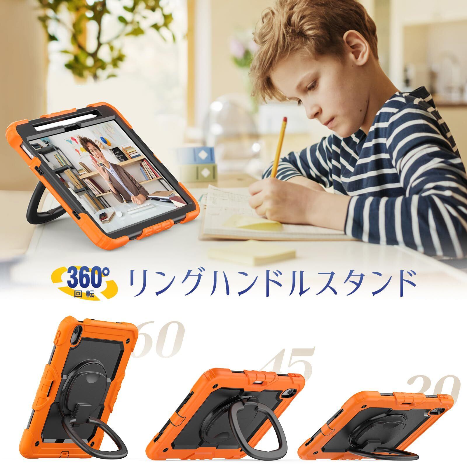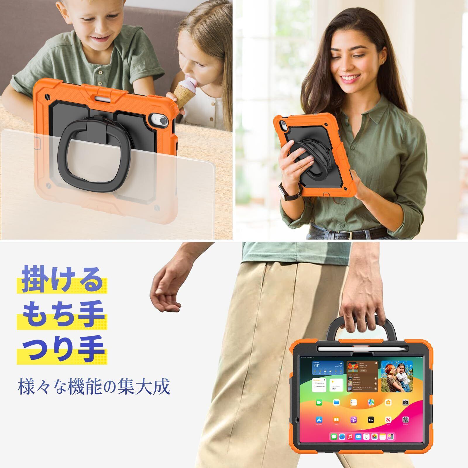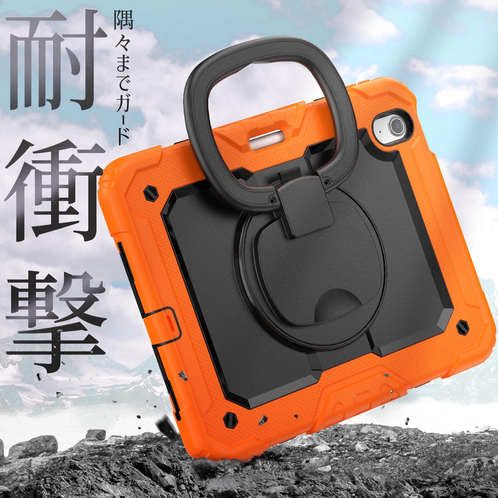 360度回転リングハンドル:どの場所、状況でも使いやすいリングハンドルは遊び、旅行中などに両手が自由になります。子供にもiPad Air11が気楽に楽しめます