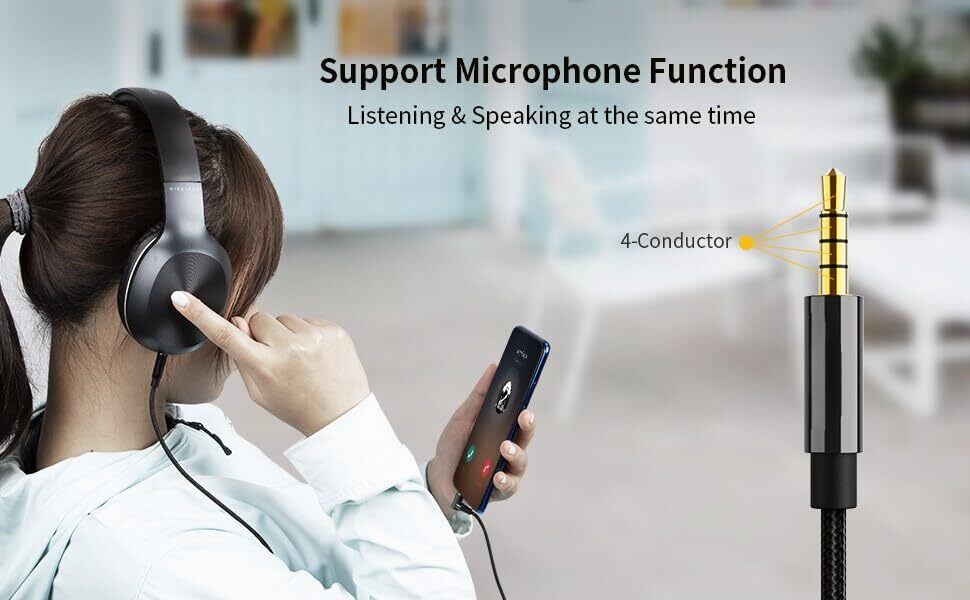 【マイク機能をサポート】4極 3.5 mm TRRSオーディオ ケーブルは、オーディオ伝送をサポートするだけでなく、マイクに接続して同時に聞いたり話したりすることもできます。