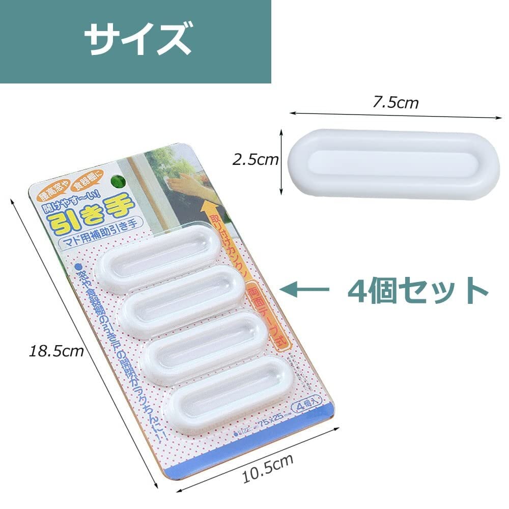 取っ手 4個セット 引戸用取手 引き戸開閉補助 網戸引手 戸棚の取っ手 窓/網戸/引き出し/戸棚/ドア用 両面テープ式 楽ちん引手 超便利 (ホワイト)