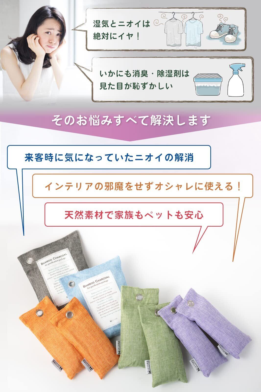 [ハナマル良品 消臭 除湿 竹炭消臭剤 クローゼット 靴 下駄箱 玄関 湿気取り 使い分け便利 8個セット(グレー)]