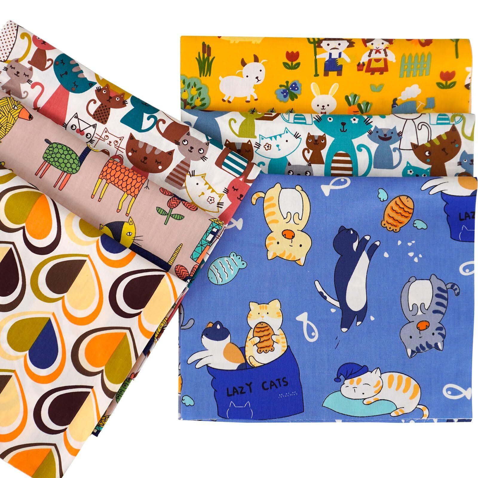 6枚 可愛い 北欧風 46x56cm カット済生地 入園 入学 コットンプリント生地 ソーイング・手芸・パッチワーク用布 セット (猫)