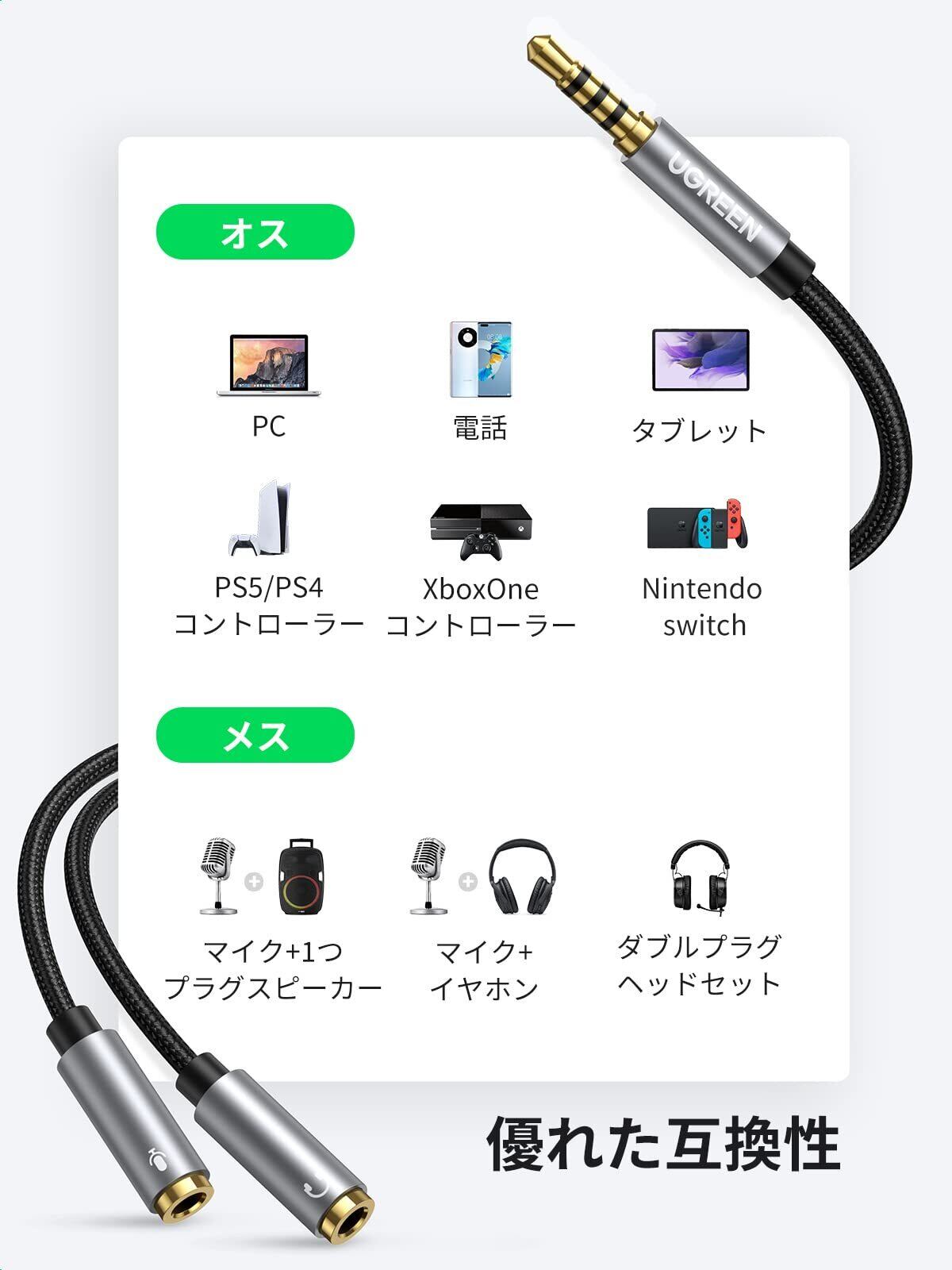 UGREEN 3.5mm オーディオケーブル 変換ケーブル 4極/TRRS 3極 3.5mm 分配ケーブル 3.5mm オス to 2*メス(ヘッドホン+マイク) イヤホン分岐コード Hi-Fi音質 無酸素銅芯線 高耐久性ナイロン編み 24K金メッキプラグ タブレット/MP3/PC/PS4/Xbox one等に対応 20CM | allstore1