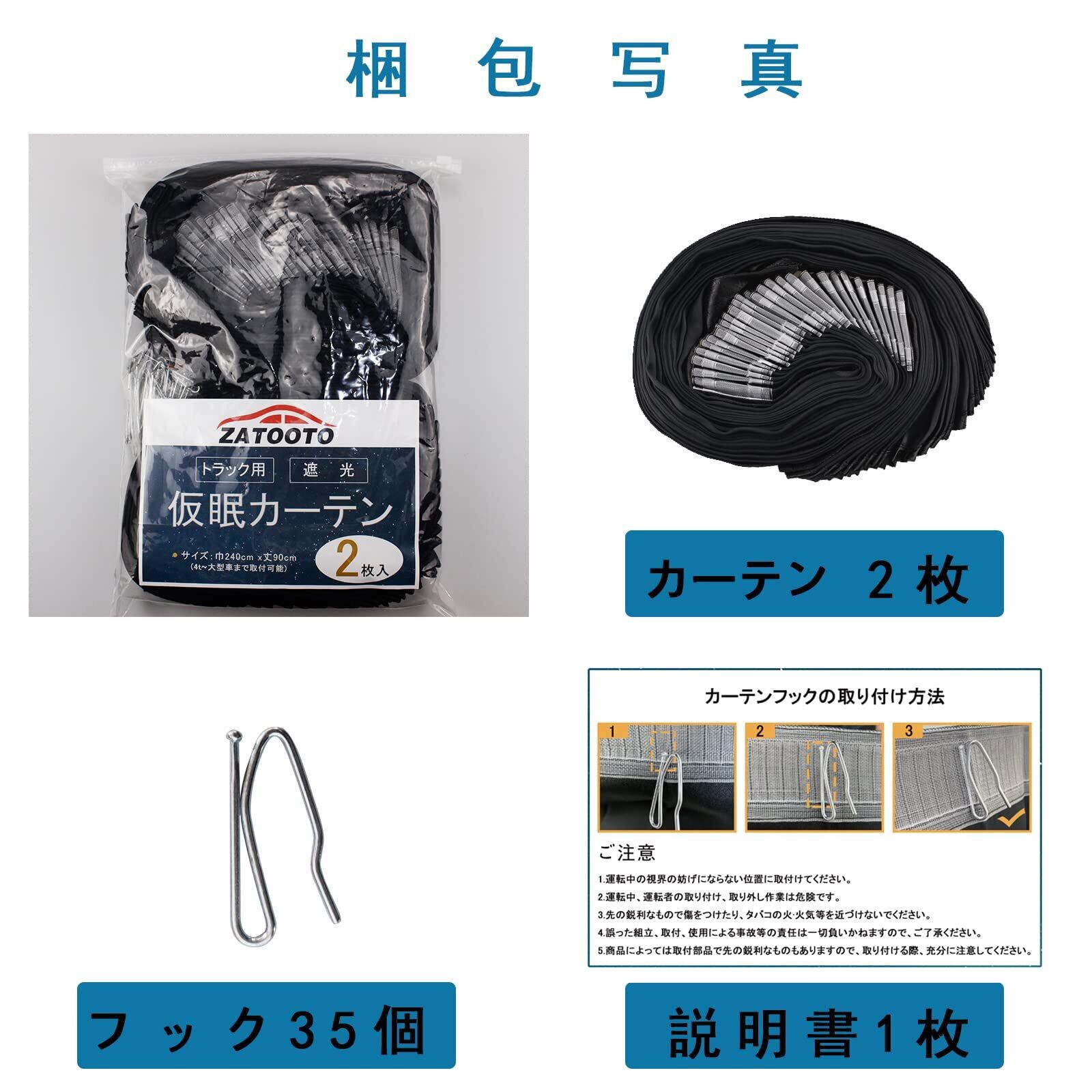 ZATOOTO トラック カーテン トラック用品 大型 中型 仮眠カーテン 遮光力 プリーツ 2枚入り 巾240㎝x丈90㎝ カー用品 フック付き 車内 車中泊 YWLYCT85-BK | allstore1