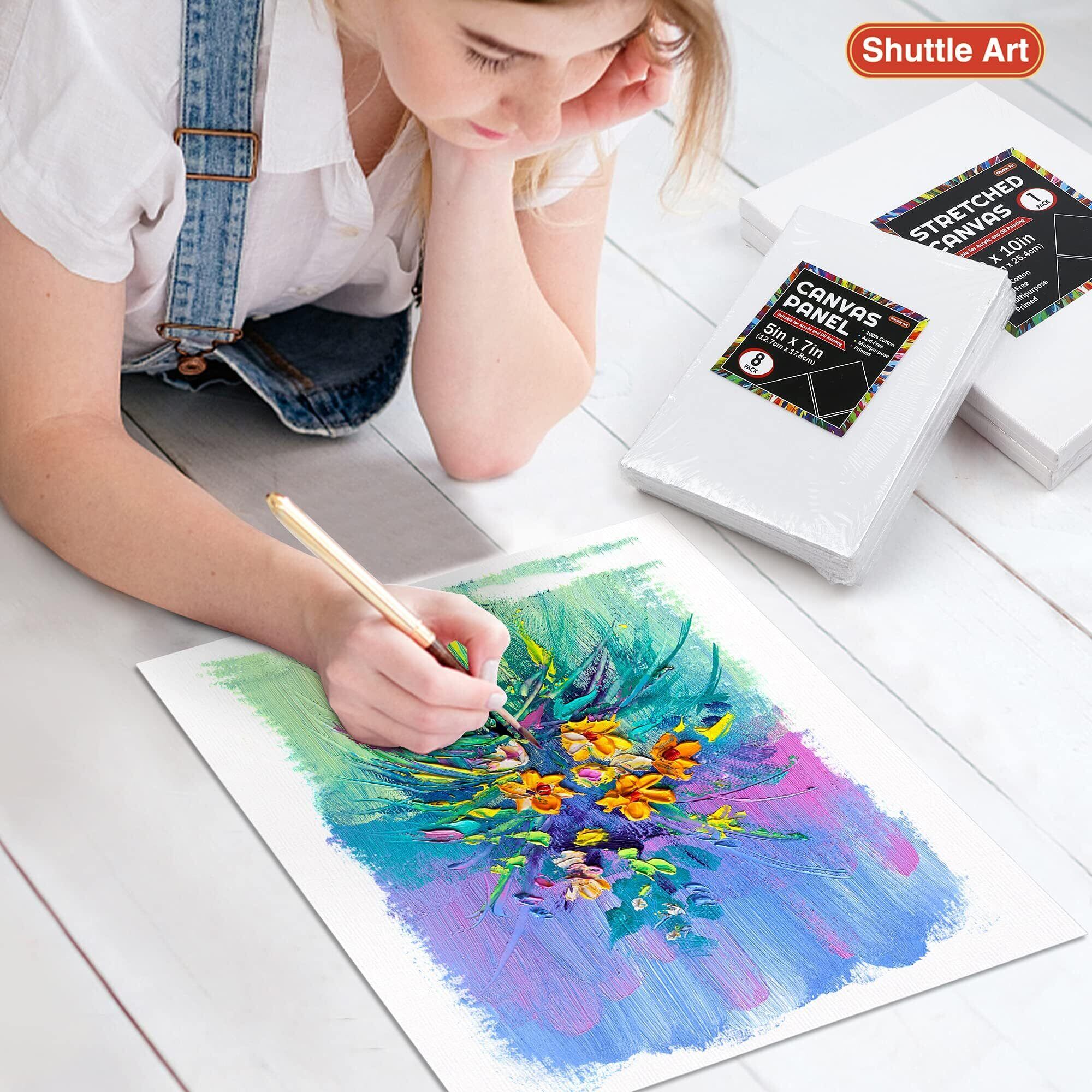 絵画用キャンバス シャトルアート 34枚パック マルチサイズ ストレッチキャンバスとキャンバスパネル 5x7インチ 8x10インチ 9x12インチ 11x14インチ コットン100% 下塗りキャンバスボード アクリルオイルペイント用 ブランクキャンバス