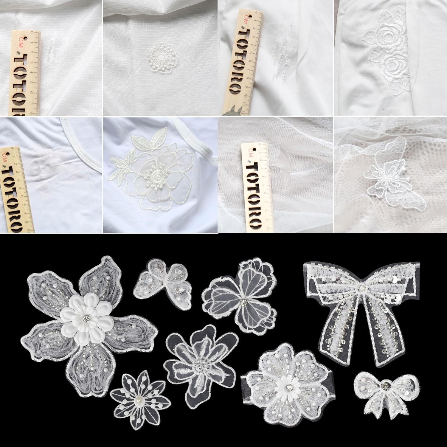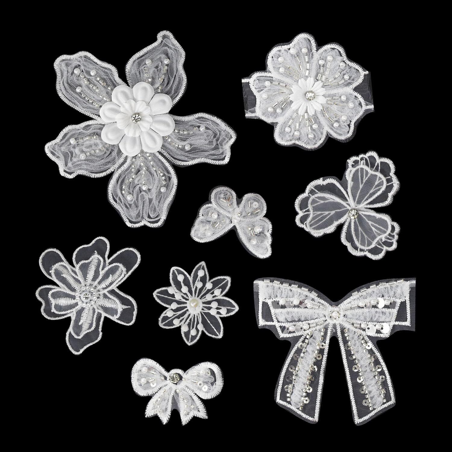 ワッペン MUNCVY レース生地 縫製 リポン 花 DIY 服 工芸品の装飾 バッグ 靴 帽子 飾り アクセサリー アップリケ モチーフ 8枚セット アイロン両面接着シート付 | allstore1