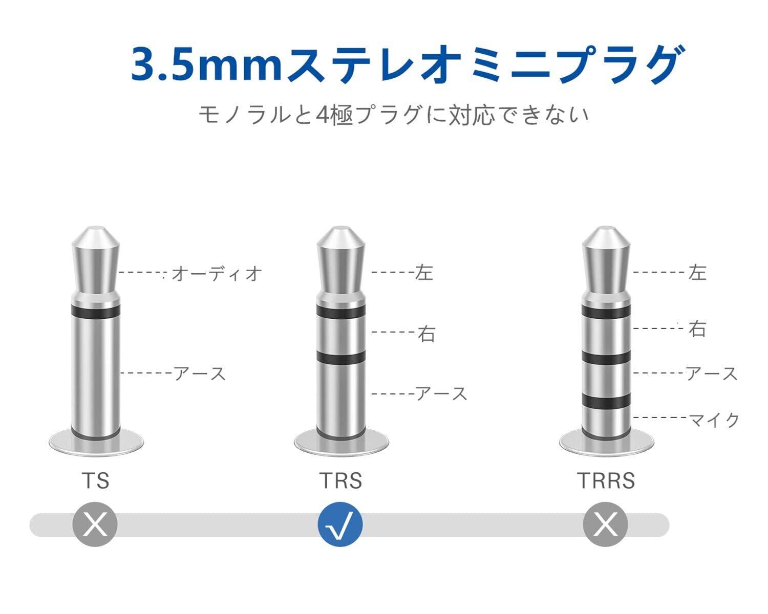 オーディオインターフェース、スピーカー、ミキサーなどに対応します。注意:iPhone純正等の(4極ミニプラグ)イヤホンには、ご使用頂けません。