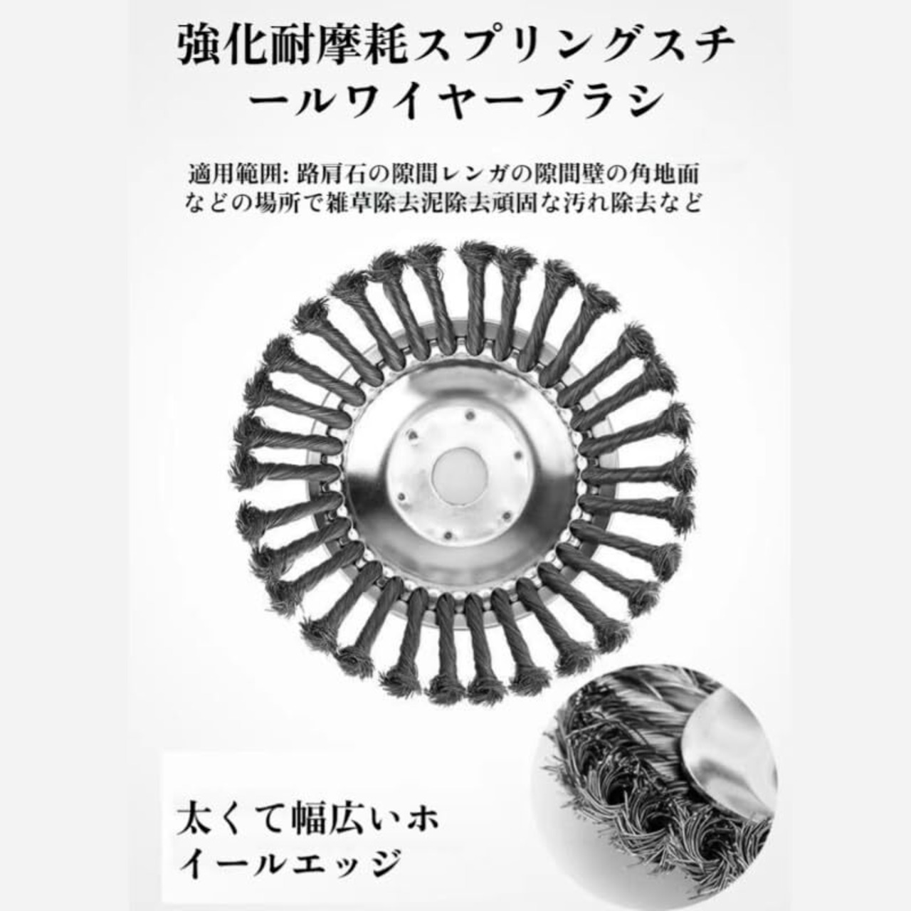 【あらゆるシーンで広く使用されている】この芝刈り機の刃は 家庭菜園 公園緑地 林間農地などに適しており 芝を定期的に剪定し 木の枝や雑草をきれいにする必要がある場所に適しています 道端 石目 レンガの継ぎ目 コーナーなど どのような場所でも 雑草 泥 頑固な汚れを効果的に除去し 除草・除錆効果を発揮します