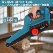 【充電式チェーンソーの仕様】■型番:充電式チェーンソー KA-17 ■チェーン速度(無負荷):0~8,000 min-1(回転/分) ■ガイドバー長さ:8インチ、10インチ ■最大切断可能幅:150 mm ■チェーン刃ピッチ:1/4" ■チェーン刃ドライブリンクゲージ:063" (1.6 mm) ■チェーン刃ドライブリンク数:45 ■オイルタンク容量:100 ml ■オイル給油方式:自動 ■電動機:アウターロータブラシレスモーター搭載 ■本体サイズ(約):36x16x12 cm ■質量:約1.63 kg ■付属品:チェーン刃・ガイドバー・チェーンカバー ■生産国:中国