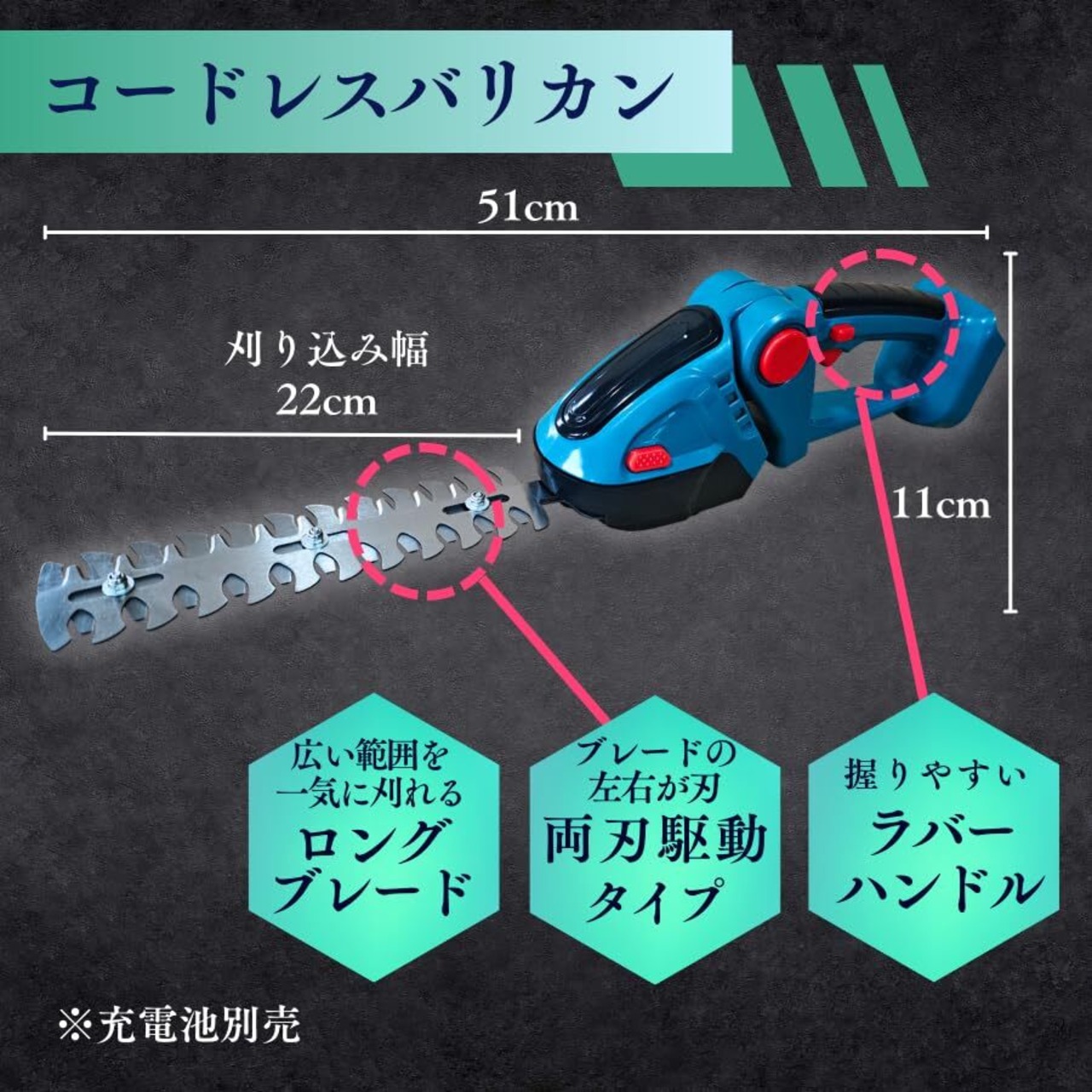 マキタ Makita 対応 コードレス ヘッジトリマー 芝生バリカン 充電式 生垣バリカン 2WAY 14.4V 18V バッテリー 互換 家庭用 工具 ※ 充電器 バッテリー 別売り (Blue) | allstore1