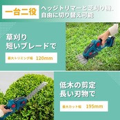 ●用途●芝刈り用ブレードと剪定用ブレードが付属するので、用途に合わせて2WAYでお使いいただけます。ブレードの交換も工具いらずで簡単に取り付けできます。