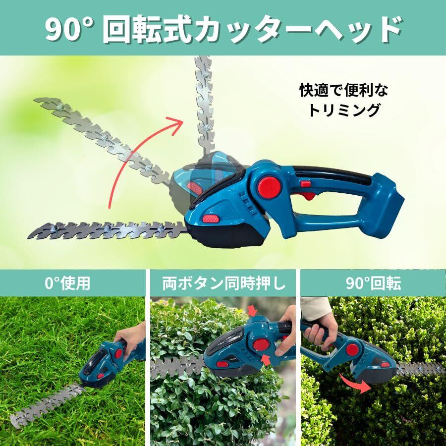 マキタ Makita 対応 コードレス ヘッジトリマー 芝生バリカン 充電式 生垣バリカン 2WAY 14.4V 18V バッテリー 互換 家庭用 工具 ※ 充電器 バッテリー 別売り (Blue)