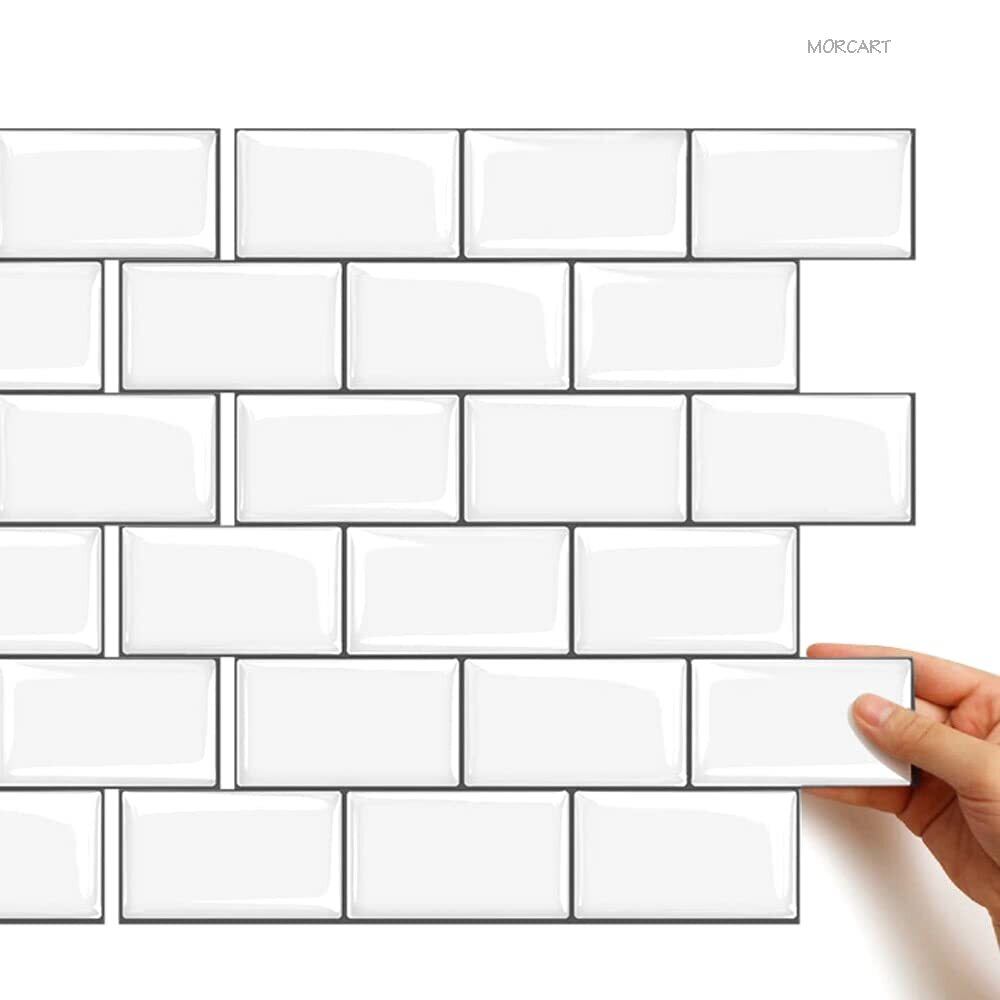 [MORCART タイルシール キッチン 耐熱 防水 洗面所 トイレ DIY 家具やアイテムの装飾 タイルシート 壁紙シール 3D リメイクシート (30x30cm, 4枚, 北欧ホワイト)]
