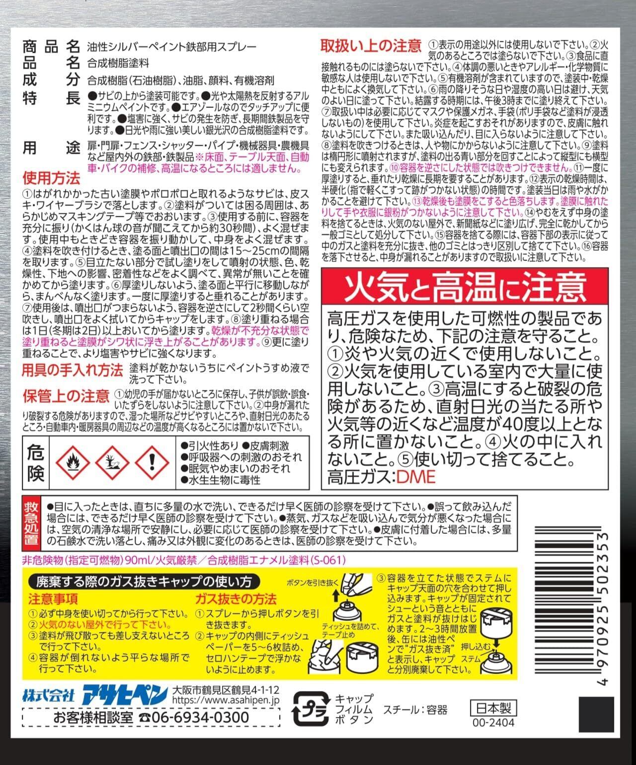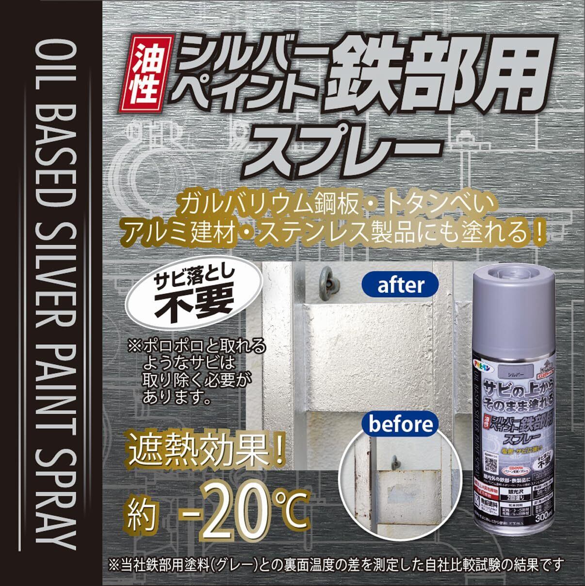 [アサヒペン 塗料 ペンキ 油性シルバーペイント 鉄部用スプレー 300ml シルバー 油性 サビの上からそのまま塗れる ツヤあり 塩害・サビに強い 遮熱効果 アルミニウムペイント 非危険物(消防法上) 日本製]