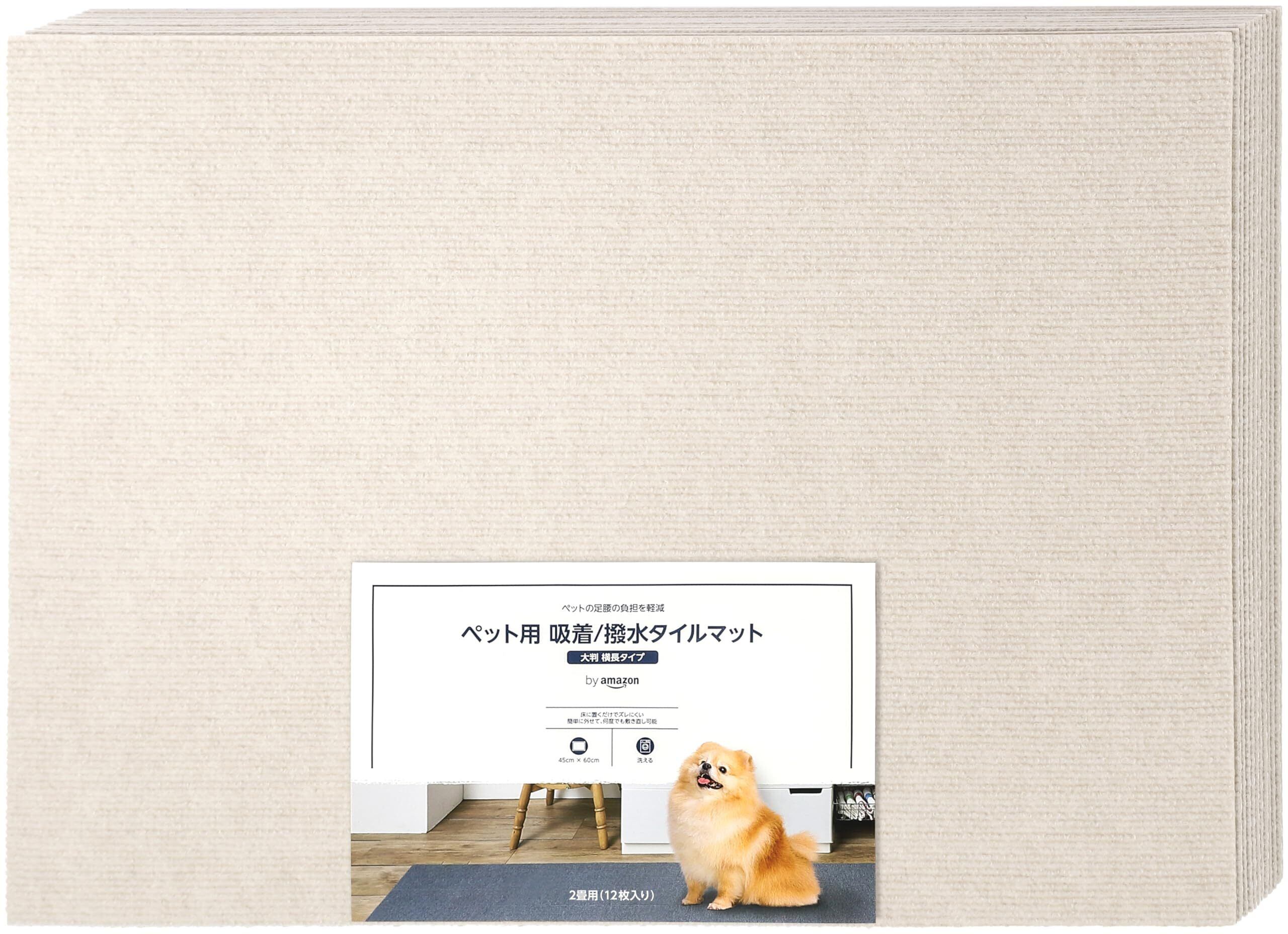 by ペット用 吸着/撥水 タイルマット 大判 横長タイプ (45cm×60cm) 2畳用(12枚入り) グレージュ