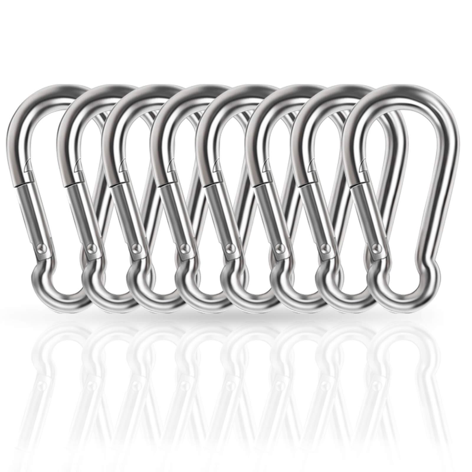 カラビナ304ステンレス鋼カラビナ 強力 スプリングフックキーホルダー 多機能 SUS304 カラビナ アウトドア 旅行用品 釣り 釣具 トレッキング 転倒防止 (m4 8)