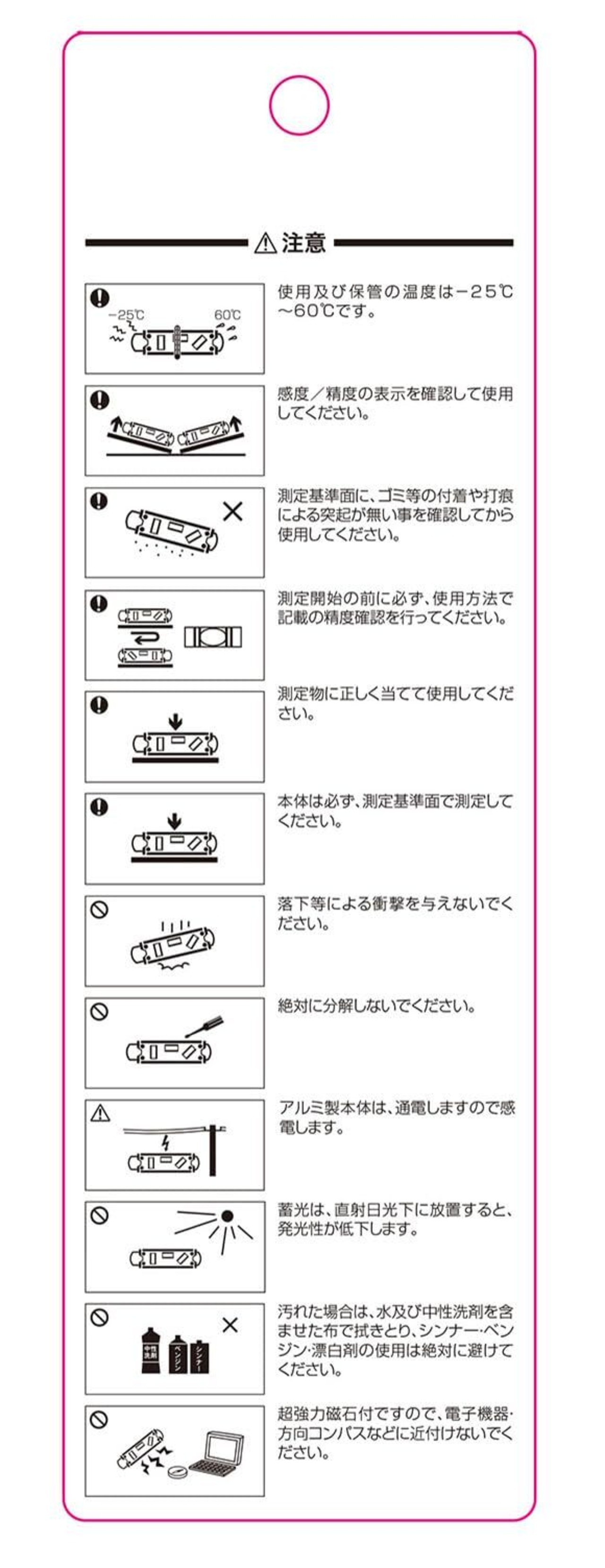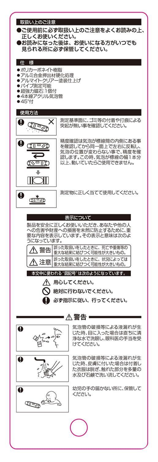感度:0.50mm/m=0.0286°/ 精度:±1.00mm/m=±0.0573°内