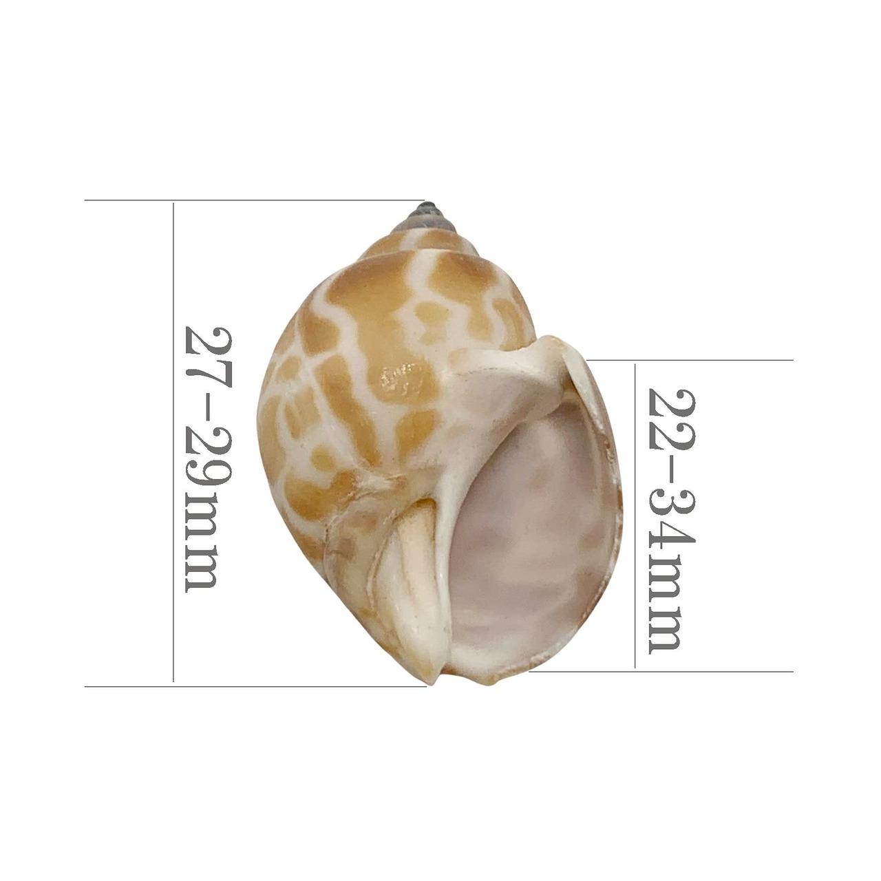 貝殻の高さ:27~29mm 口径(殻口の長さ)目安:約13~17mm