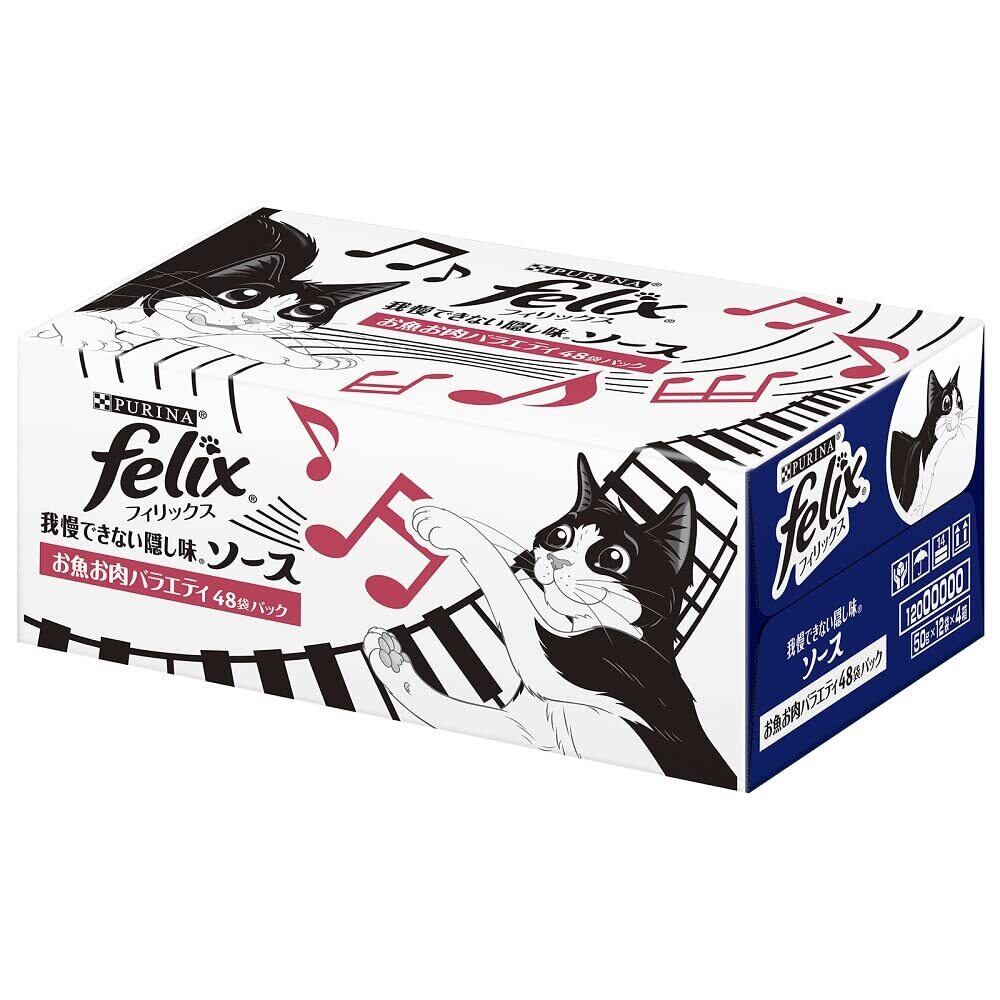 「フィリックス パウチ 我慢できない隠し味ソース」は、愛猫のために厳選されたお魚とお肉を使用した美味しいバラエティパックです。ツナ、チキン、ビーフの3種類が楽しめる48袋の大容量で、毎日のご飯を楽しく彩ります!