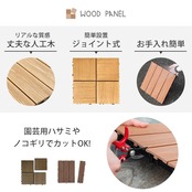 ※こちらは27枚セットです。【1枚あたりのサイズ】 ・本体部分の実質寸法: (約)29.5cm×29.5cm×厚さ約1.3cm ・ジョイント部分まで含めた全寸法: (約)30.5cm×30.5cm×厚さ約2.2cm【重量】【クロス】1枚あたり約0.7kg 【ストライプ】1枚あたり約1kg【耐荷重】1枚あたり約800kg【素材】土台:ポリプロピレン 天板:人工木<WPC(木粉45%入り)