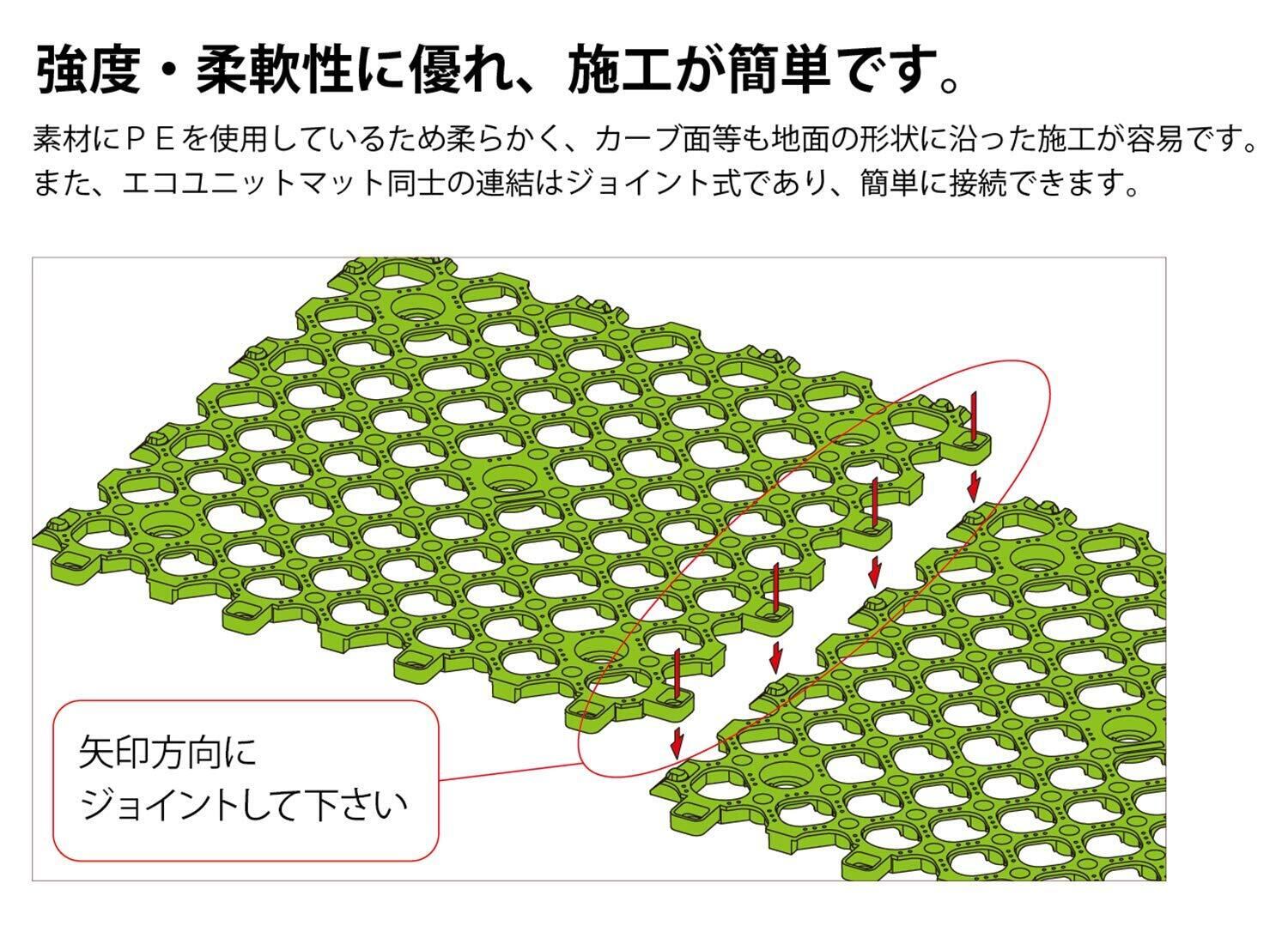 このエコユニットマットは、地面を傷めることなく、自転車や歩行者の通行をサポートします。特に芝生の生育に配慮した設計で、土壌に根を張ることを妨げることなく、安心して自然環境を保護します。お庭や公園など、さまざまなシーンで活躍すること間違いなし!