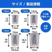 【サイズ・スペック】「サイズ」10cm:縦=12cm×横=10cm 底部:7.5cm12cm:縦=14cm×横=12cm 底部:9cm14cm:縦=16cm×横=14cm 底部:10.5cm16cm:縦=18.2cm×横=16cm 底部:12cm「バリエーション」10cm、12cm、14cm、16cm「入り数」5個セット「付属品」台座付き