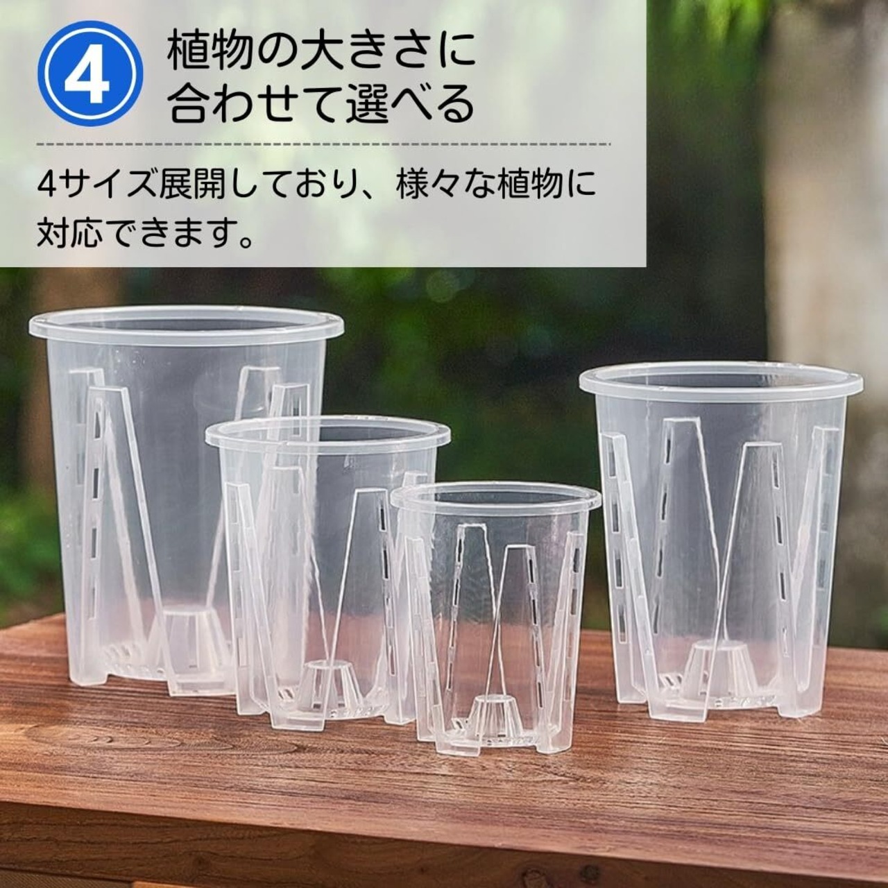 【多様なサイズで幅広い植物に対応】4サイズ展開で、多肉植物から胡蝶蘭まで幅広く対応します。様々な植物や苗木に最適です。