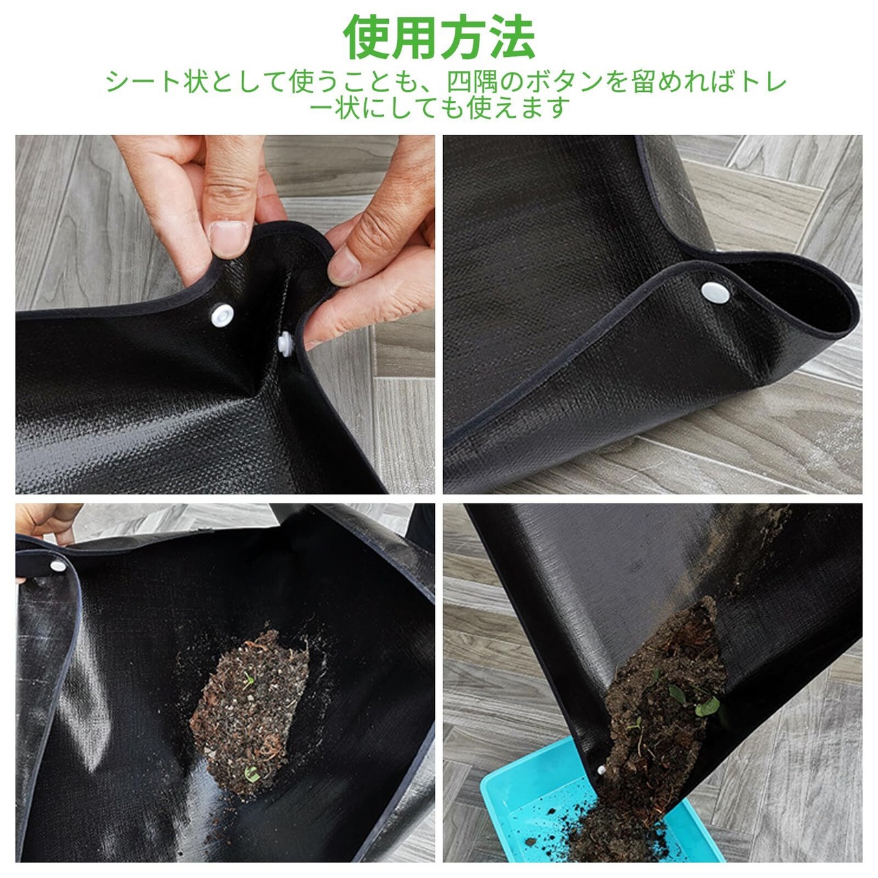 この植え替えシートは、多様な用途に対応しています。観葉植物や花壇の植え替え、さらにはガーデニングトレーとしても利用可能です。屋外でも室内でも使えるため、あなたのガーデンライフをより一層楽しむことができるでしょう!