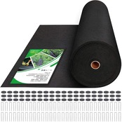 [防草シート 厚手 1x50m 耐用年数5 雑草対策防止 高透水 高耐久 高密度 不織布 UV耐候剤配合 固定ピン60本と黒丸60枚付き 工事用 園芸用 家庭菜園 人工芝下 駐車場 ロールタイプ 黒]