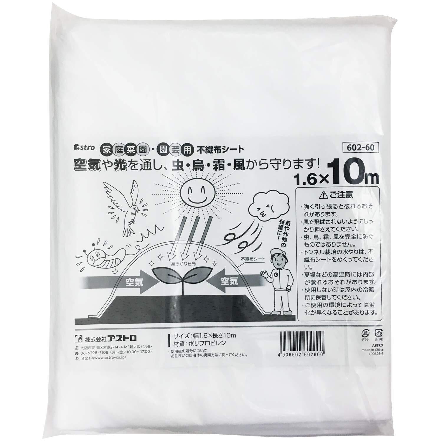 [アストロ 園芸用 不織布シート ホワイト 1.6×10m 霜よけ 家庭菜園 ガーデニング 霜対策 防寒カバー 防虫 防鳥 保温 遮光 農業 602-60]