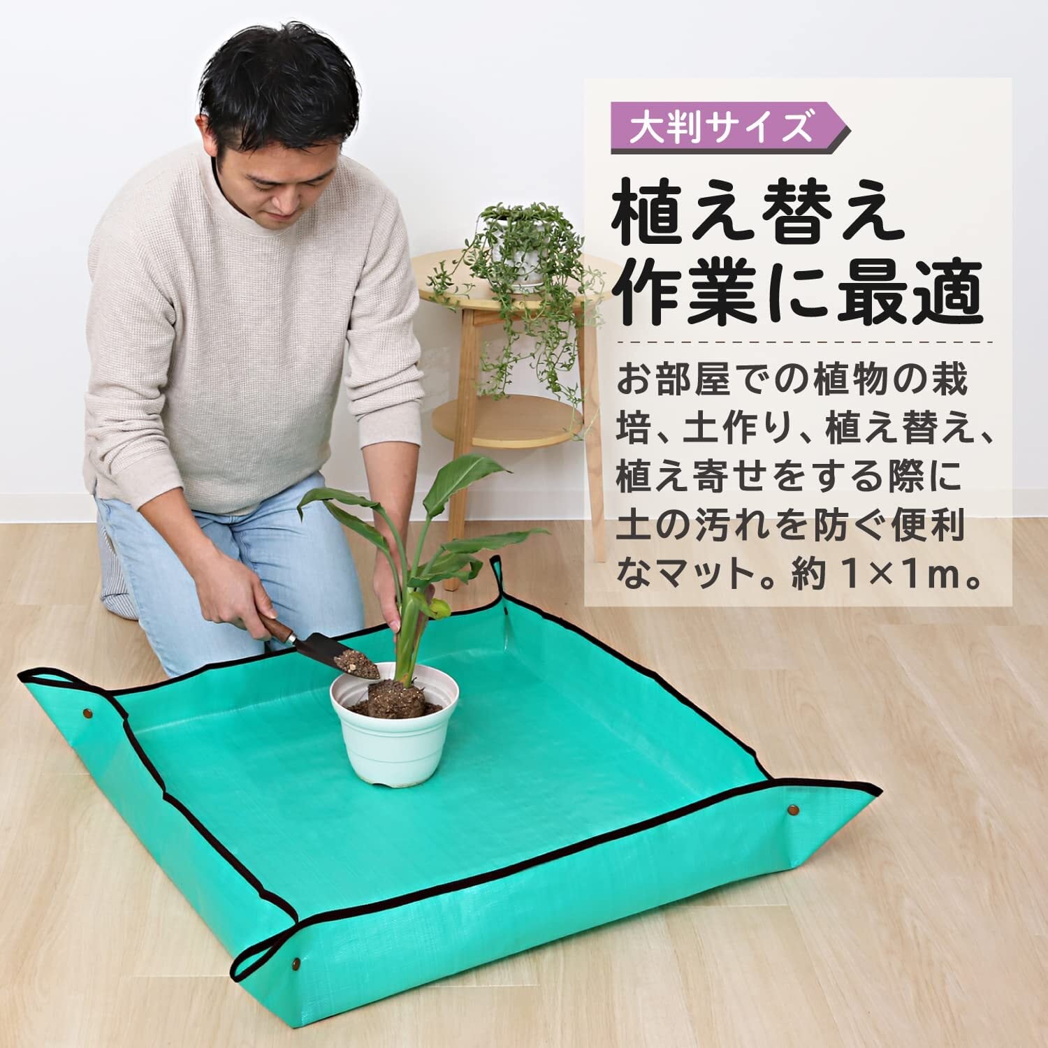 【便利なプランティングシート】:お庭やベランダでの植物の栽培、土作り、植え替え、植え寄せをする際に土の汚れを防ぐ便利なマット。