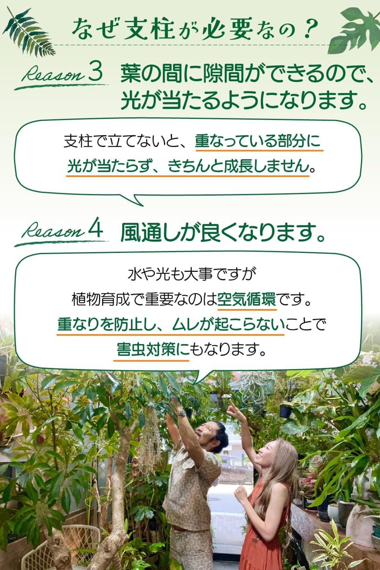 この支柱は、植物がしっかりと成長できるように安定したサポートを提供します。軽量ながらも丈夫な素材を使用しており、風や雨にも負けず、長期間使用できますので、安心してお使いいただけます。