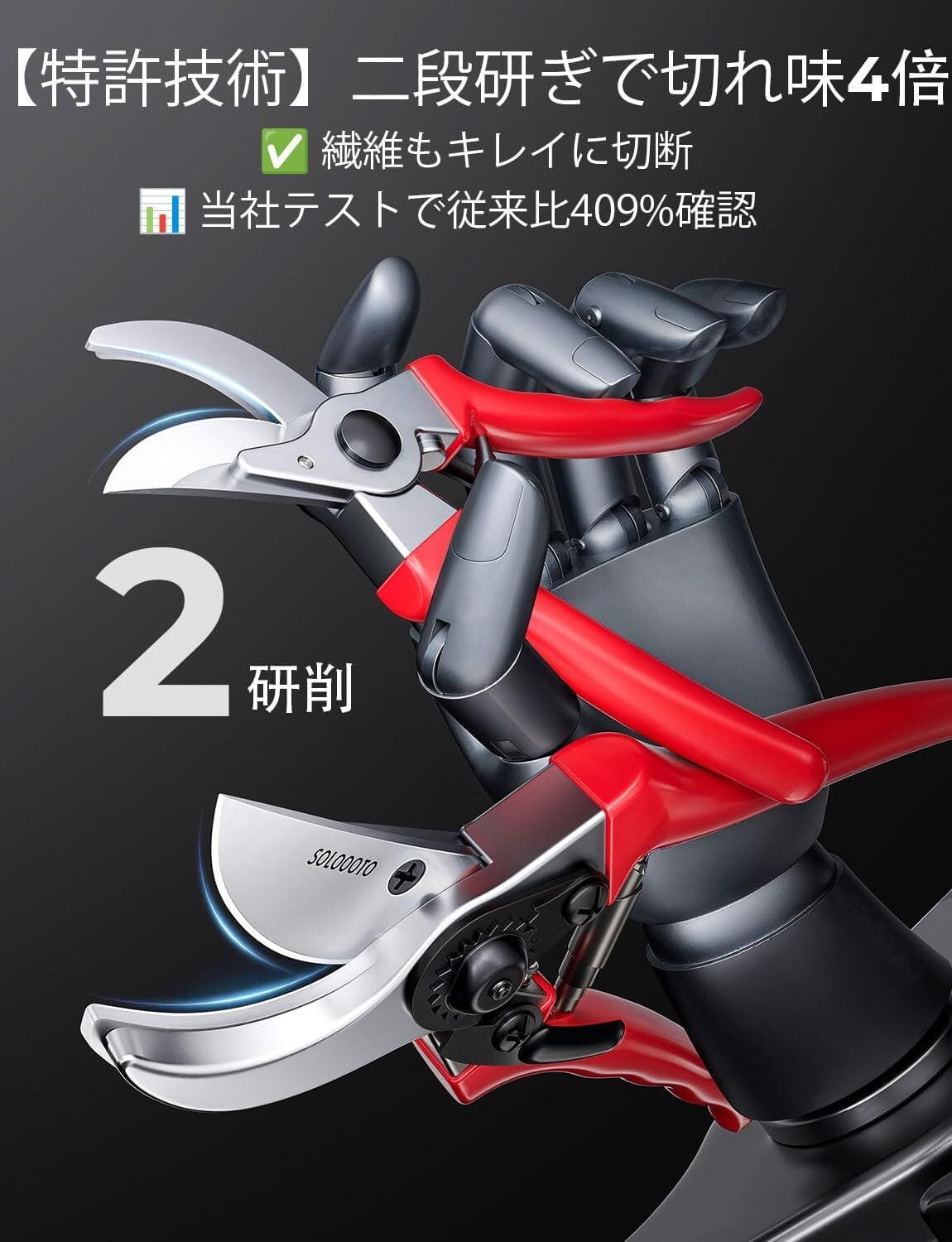 「SOLOTODO プロ 剪定ばさみ」は、2025年の人気庭師が推奨する剪定バサミです。ドイツの技術を採用したこの人気商品は、切れ味が驚異の4倍。枝切りや生け花、果樹や盆栽など、さまざまな園芸作業を快適に行うためのアイテムです!