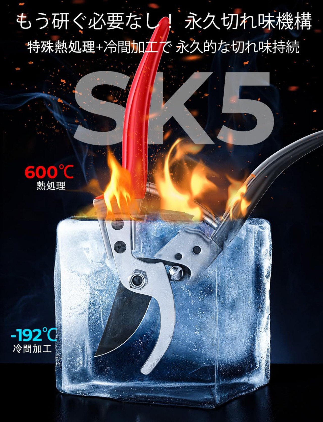 使用されているSK5鋼は、日本で製造された高品質な素材で、シャープな刃が長持ちします。特に、園芸初心者から上級者まで満足できる切れ味で、太い枝もスムーズにカット。また、錆びにくい特性もあり、長期間使用することができます。