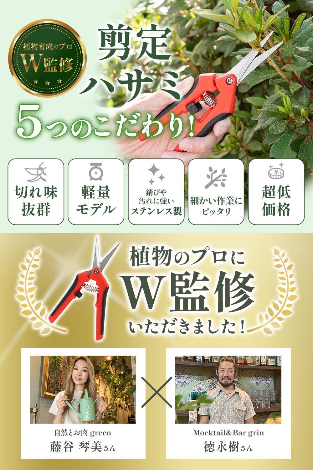 剪定バサミ コンパクトサイズ 【植物育成のプロW監修】握りやすく軽量なタイプ x 細かい作業に x サクサク切れます[GarageBrandProduct] (レッド)