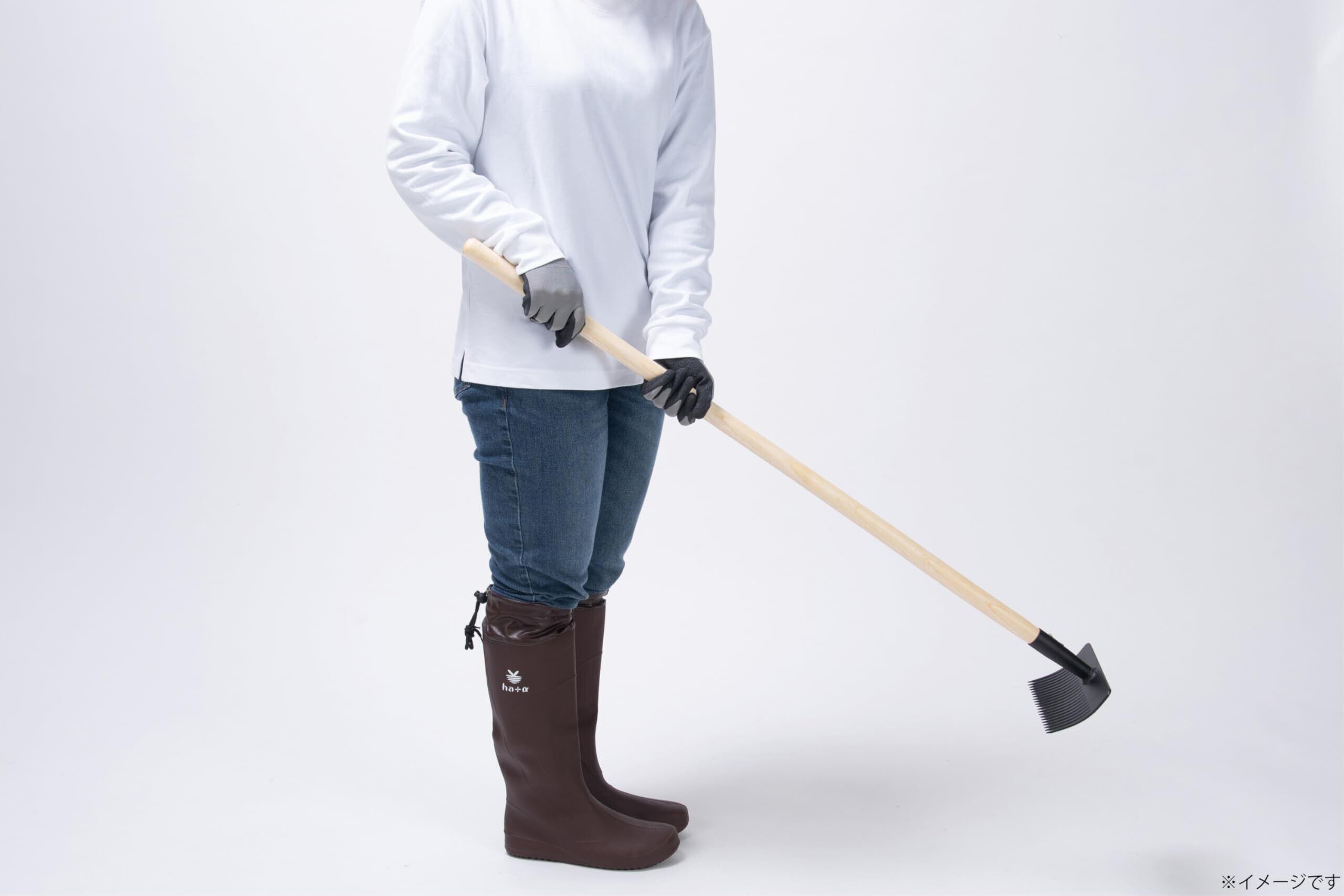 この鍬レーキは、頑丈な素材を使用しており、長期間にわたりその性能を発揮します。重厚な作りと鋭い刃先が相まって、頑固な土壌でもしっかりと土を耕し、除草が可能です。また、鍬とレーキの機能が融合しているため、あらゆる作業に対応できます。