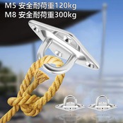 このパッドアイは、耐腐食性に優れたステンレス素材で作られており、長期間使用しても劣化しにくく、頑丈さを誇ります。屋内外問わず幅広いシーンで使用できるため、さまざまな環境に適応します。