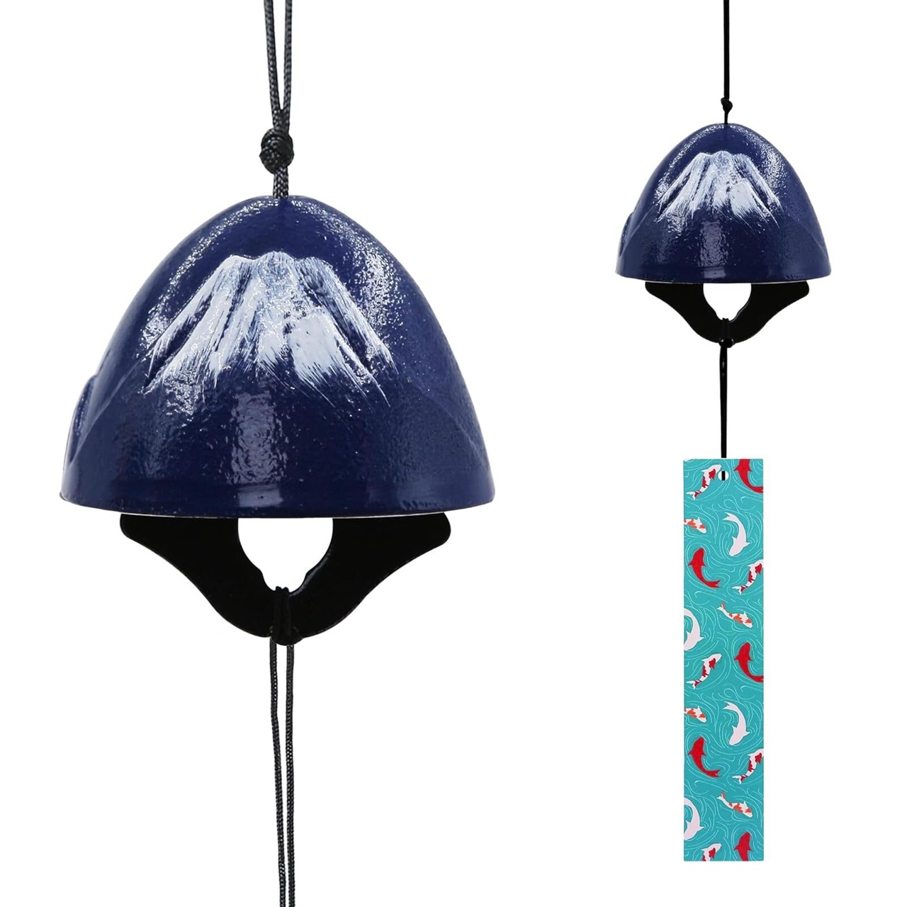 Topatrol 風鈴 ウィンドチャイム 鋳鉄 鉄器 屋外 玄関 手作り 癒し音 おしゃれ プレゼント 贈り物 鋳鉄風鈴 ぶら下げ風鈴 チャイム 鉄 夏の風物詩 おしゃれ 涼しい 清涼 人気 装飾 南部鉄器 釣鐘 松実 松ぼっくり 伝統工芸 短冊付き いい音 澄んだ音 かわいい (富士山 (ブルー))