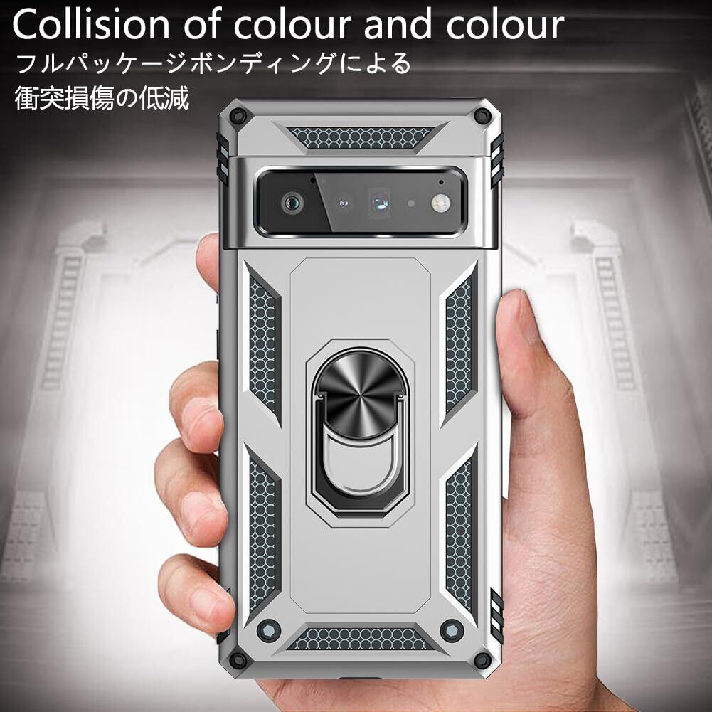 WYEPXOL Google Pixel 7 Pro ケース リング付き対応 落下衝撃吸収 TPU PC 米軍MIL規格 二重構造 スタンド機能 スマホケース グーグル ピクセル 7 pro ケース 耐衝撃 車載ホルダー対応 軽量 擦り傷防止 取り出し易い 落下防止 携帯カバー 銀 ZW57-39