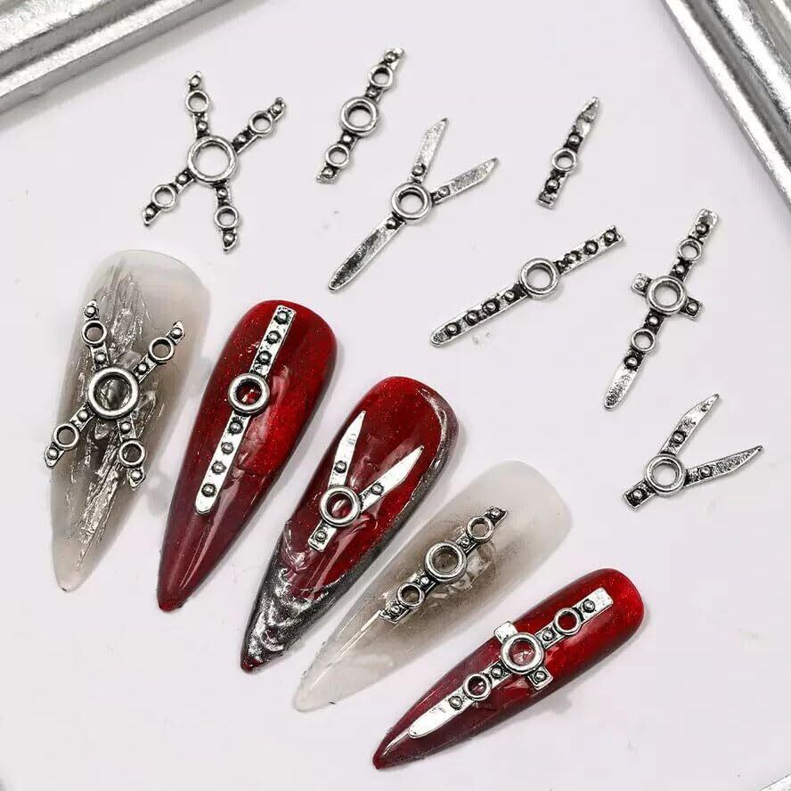 セット内容: パンクスタイルの合金製ネイルアクセサリー50個セット、ランダムデザインで個性的なネイルアートを実現