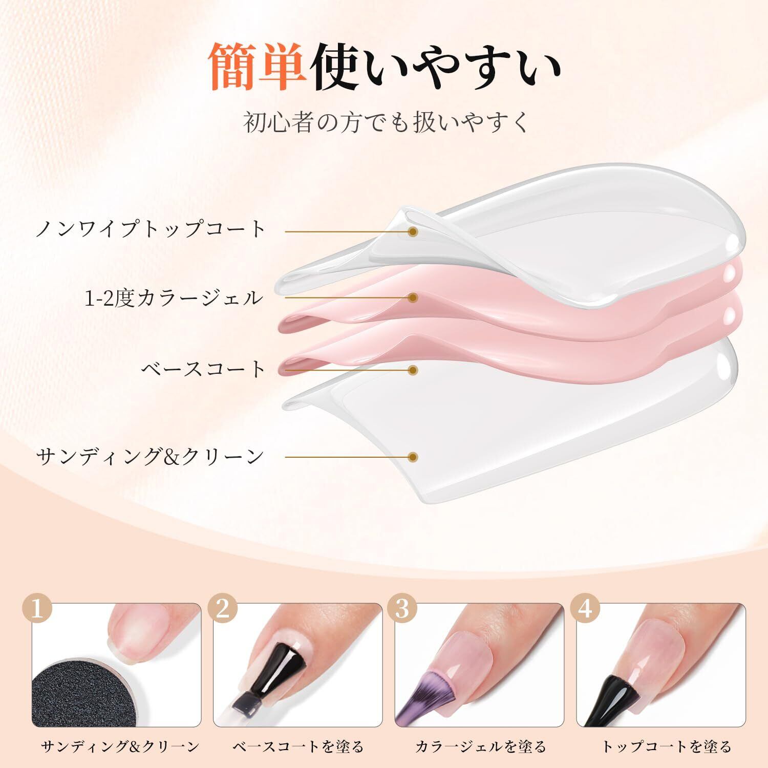 使いやすいジェルタイプで、初心者の方でも短時間で簡単に塗布できます。ジェルネイルを始める方にとっても、安心してご使用いただけるアイテムです。